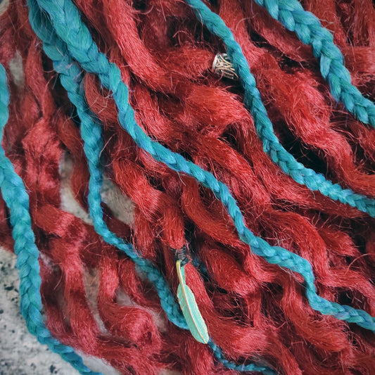 Bright Red Ginger and Green Curly Dreads Extensions.