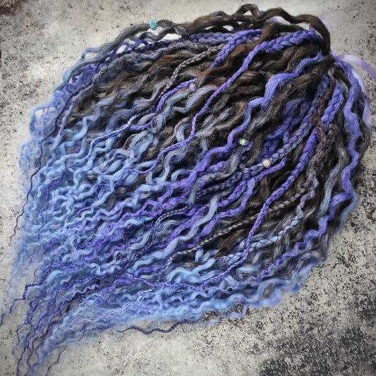 Curly Dreads. Ombre Black to Violet and Purple