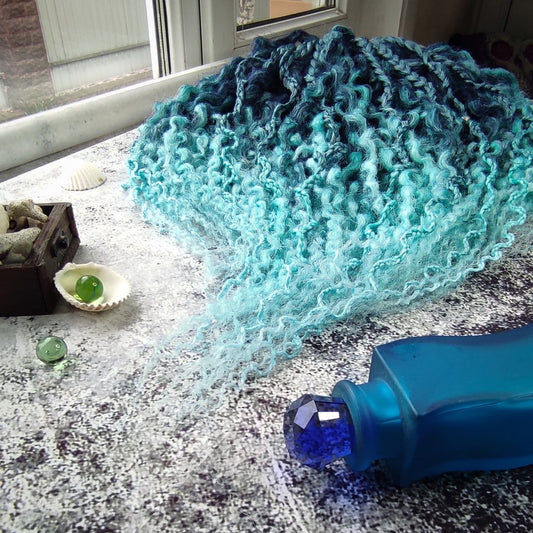 Curly Dreads. Ombre Dark Blue to Mint - Sea Wave