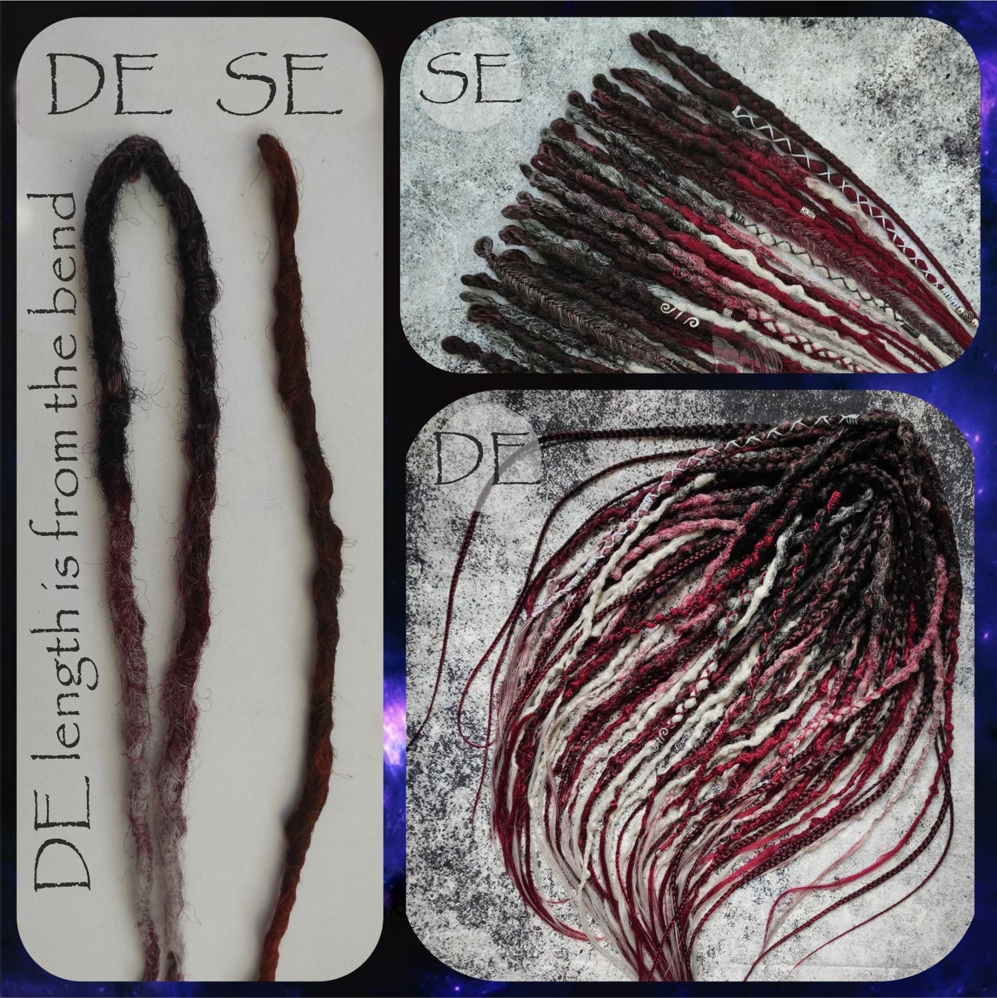 DE - Double Ended - when 1 dread is folded in half and you get two ends (dreads)